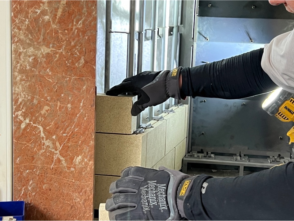 The PriorFire system offers several distinct advantages over a standard masonry fireplace. For starters, it’s capable of producing two to three times more heat than a typical masonry fireplace. This is largely due to its lightweight firebrick construction, which absorbs far less heat than traditional heavy firebrick or dense castable materials. Instead of warmth getting trapped in the surrounding masonry, more of it radiates directly into your living space where you actually feel it.